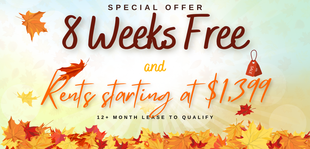 Apartment rents are now starting at $1,399! We've made the deal is even sweeter with 8 weeks free if you lease within 72 hours of touring with 12+ month lease on select apartment homes!